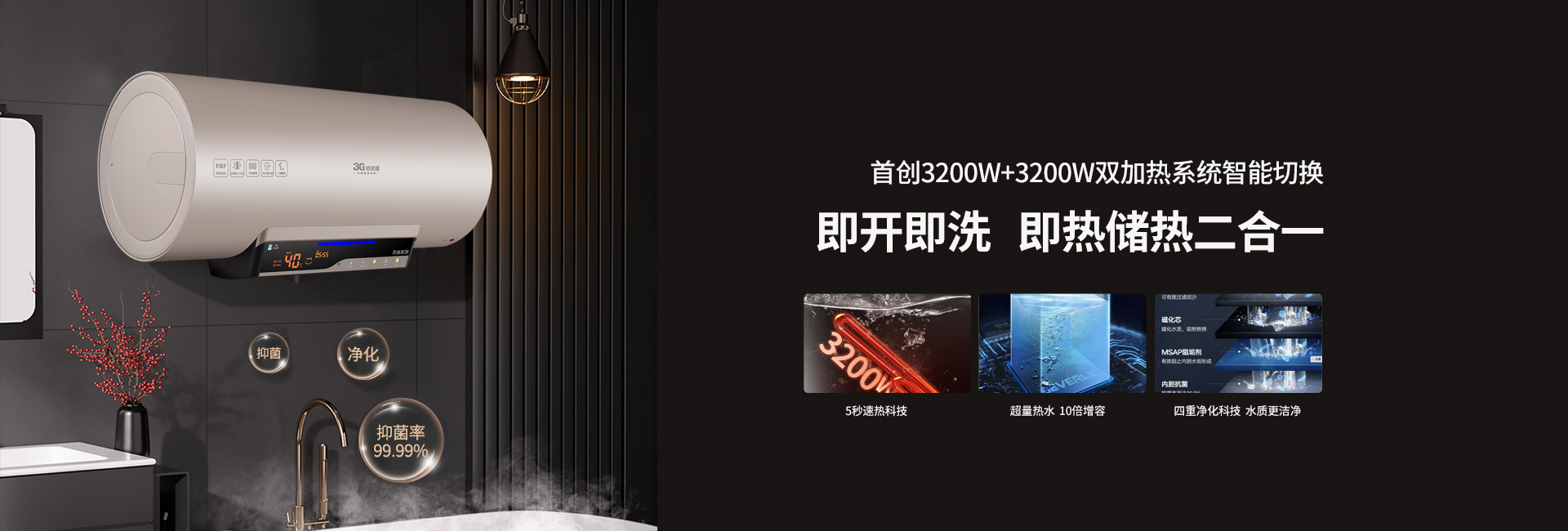 • 3000W速熱+3000W儲熱雙加熱系統(tǒng):速熱儲熱2合1,快速升溫、3-5分鐘可洗。健康活水機:前置凈水+360°內(nèi)膽自助清洗+三效抑菌 抑菌率99.99%。